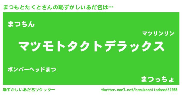 | ヘコむあだ名 | 『まつもとたくと(震え声)』『酢こんぶ』 |