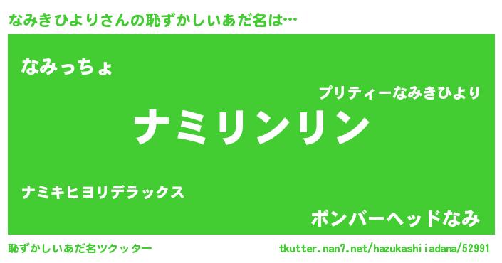 | 意味不明あだ名 | 『とにかく怪しいなみきひより』 |