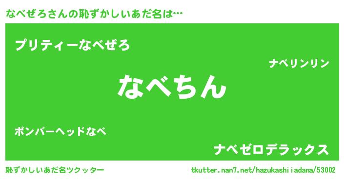 | 意味不明あだ名 | 『永久保存なべぜろ』『ペロリンなべぜろ』 |