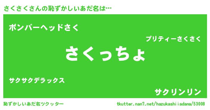 | ヒーロー風カッコイイあだ名 | 『ウルトラさくさくマン』『暗黒騎士サク』 |