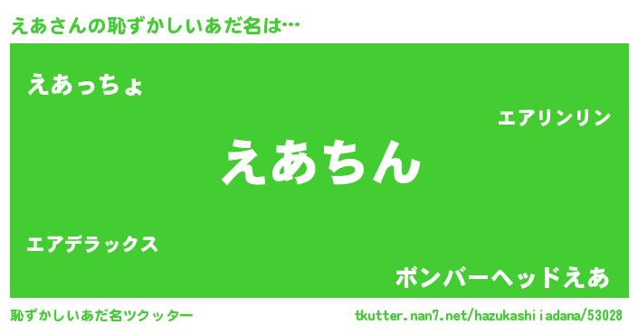 | ヘコむあだ名 | 『えあ(爆)』『なまこ酢』『えあにー』 |