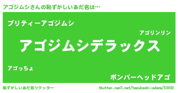 | 女子向けラノベタイトル風あだ名 | 『アゴジムシアンティーク』 |