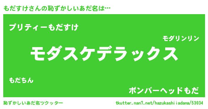 | ヒーロー風カッコイイあだ名 | 『仮面モダダー』『最強戦士モダスケ』 |