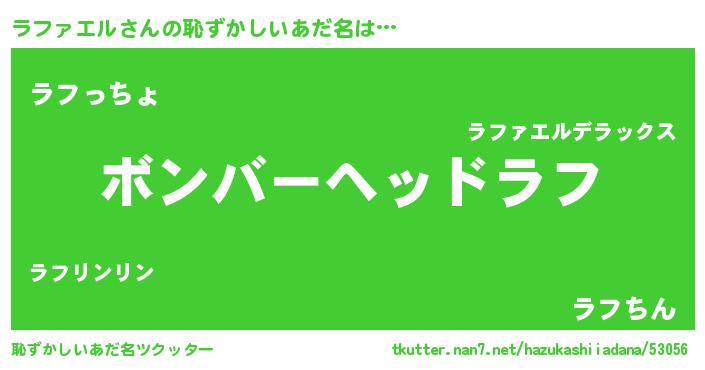 | ヘコむあだ名 | 『牛乳』『ラファエル(爆)』『ラフお』 |