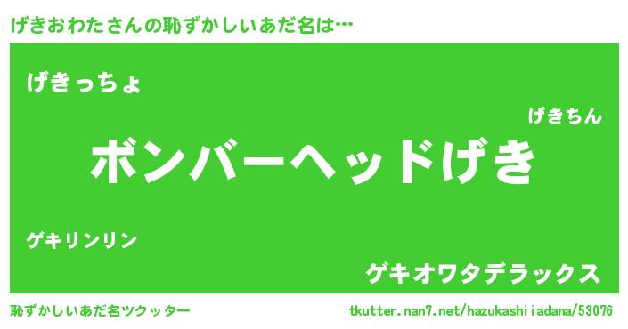 | 意味不明あだ名 | 『住所不定無職げきおわた(89歳)』 |