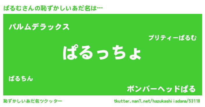 | 意味不明あだ名 | 『ぱるむフォーエバー』『自称ぱるむ』 |