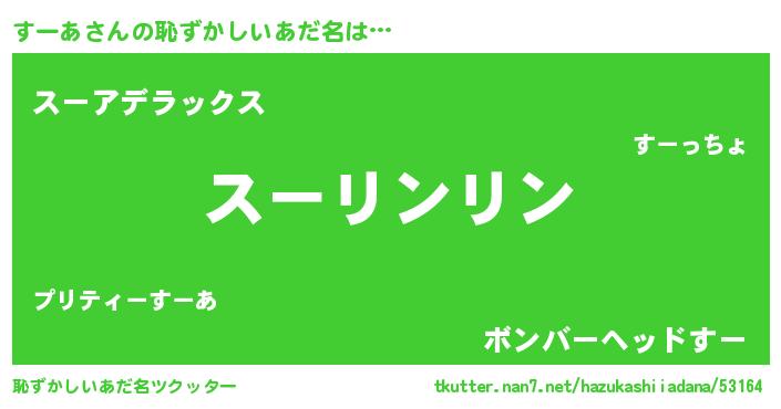 | 意味不明あだ名 | 『とにかく怪しいすーあ』『自称すーあ』 |