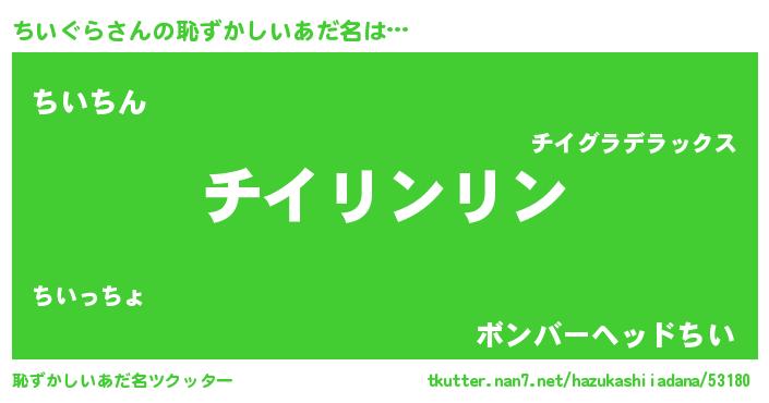 | 男性向けラノベタイトル風あだ名 | 『ちいぐらの嫁は女の子じゃないと思った?』 |