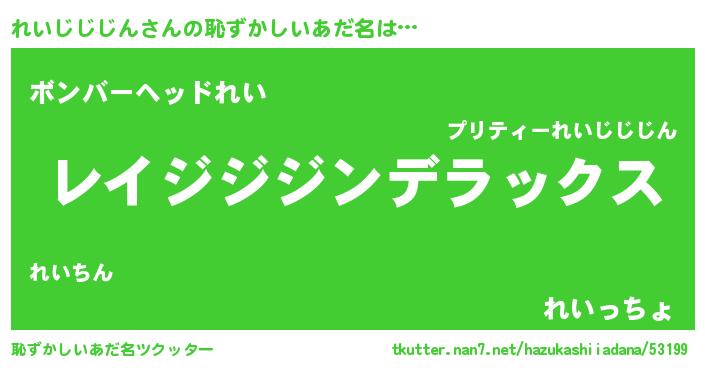 | 男性向けラノベタイトル風あだ名 | 『れいじじじん~年齢イコール彼女いない歴の魔法使い~』 |