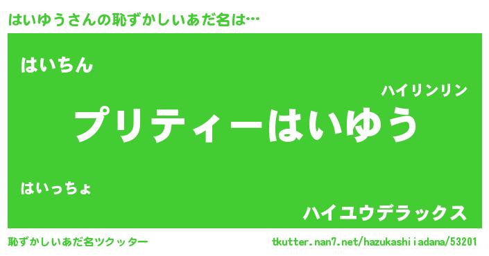 | ヒーロー風カッコイイあだ名 | 『スーパーハイユウ』『ネオハイユウ』 |