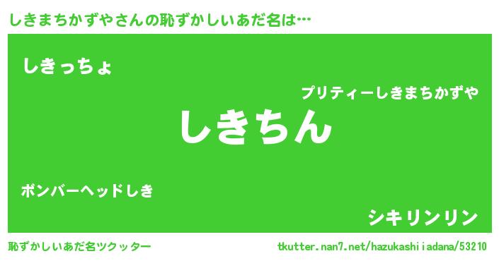 | 可愛いあだ名 | 『しきまちかずやママ』『しきちー』 |