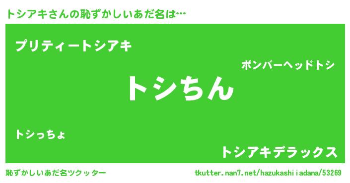 | 意味不明あだ名 | 『永久保存トシアキ』『ペロリントシアキ』 |