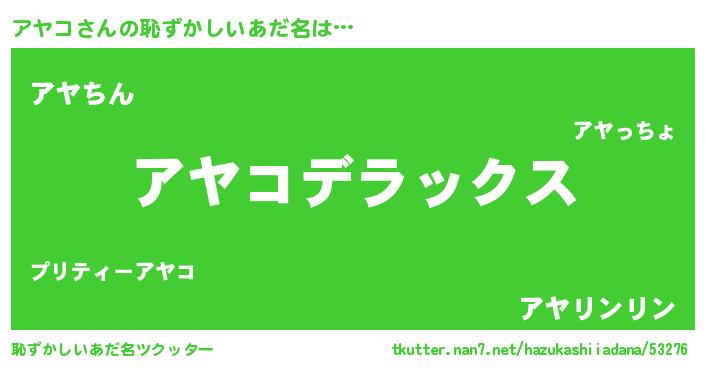 | ヒーロー風カッコイイあだ名 | 『仮面アヤダー』『究極戦士アヤコ』 |