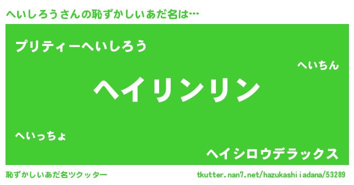 | 意味不明あだ名 | 『とにかく怪しいへいしろう』 |