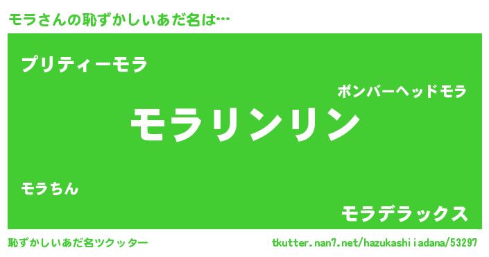 | 意味不明あだ名 | 『とにかく怪しいモラ』『ペロリンモラ』 |