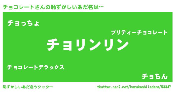 | 男性向けラノベタイトル風あだ名 | 『はたらくチョコレートさま!』 |