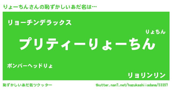 | 男性向けラノベタイトル風あだ名 | 『転生したらりょーちんだった件』 |