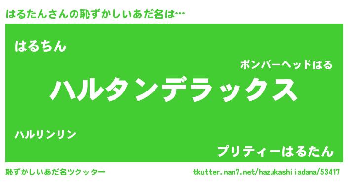 | 意味不明あだ名 | 『自称はるたん』『永久保存はるたん』 |