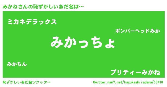 | ポケモン風あだ名 | 『ミカネダネ』『ミカセウス』 |