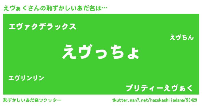 | 可愛いあだ名 | 『えヴちー』『えヴうちぇる』 |
