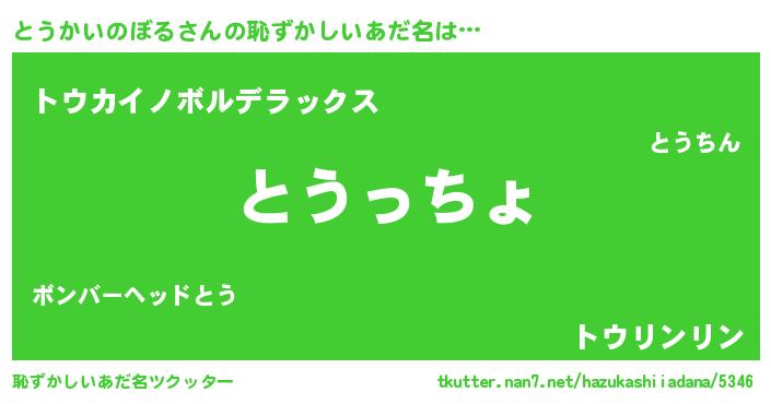 | 男性向けラノベタイトル風あだ名 | 『はたらくとうかいのぼるさま!』 |