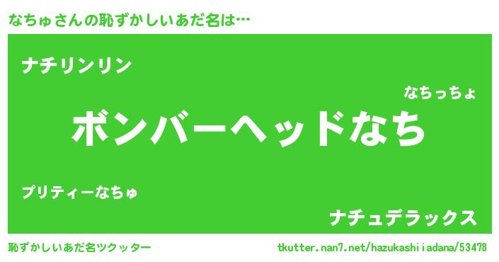 | 女子向けラノベタイトル風あだ名 | 『死神なちゅの再婚』『闇のなちゅ』 |