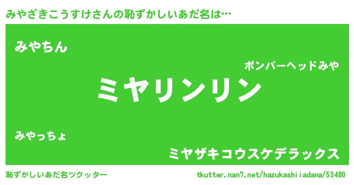 | ヘコむあだ名 | 『みやを』『みやざきこうすけ(震え声)』 |