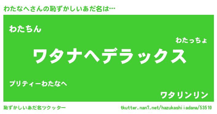 | ヘコむあだ名 | 『わたなへ(苦笑)』『わたお』 |