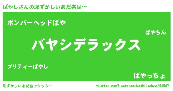 | ヒーロー風カッコイイあだ名 | 『ウルトラ戦士バヤシ』『仮面バヤダー』 |