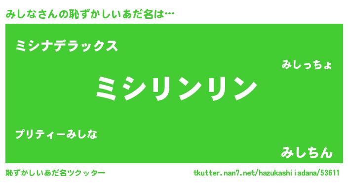 | 意味不明あだ名 | 『とにかく怪しいみしな』『自称みしな』 |