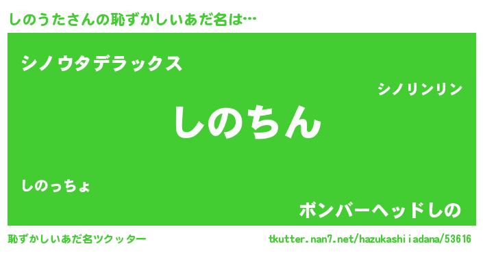 | ヘコむあだ名 | 『しのうた(遠い目)』『しの太郎』 |