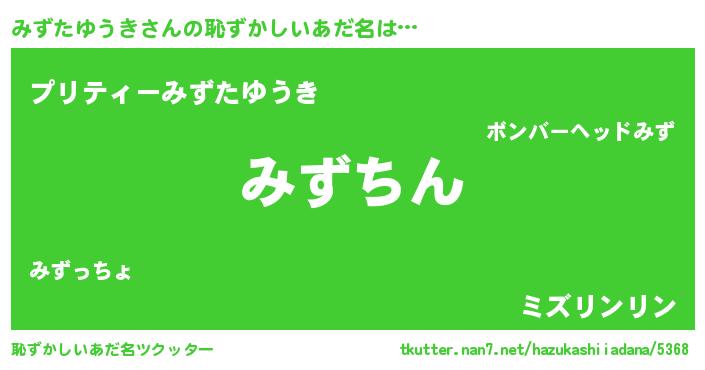 | ヘコむあだ名 | 『みずたゆうき(笑)』『みずっふぃ~』 |