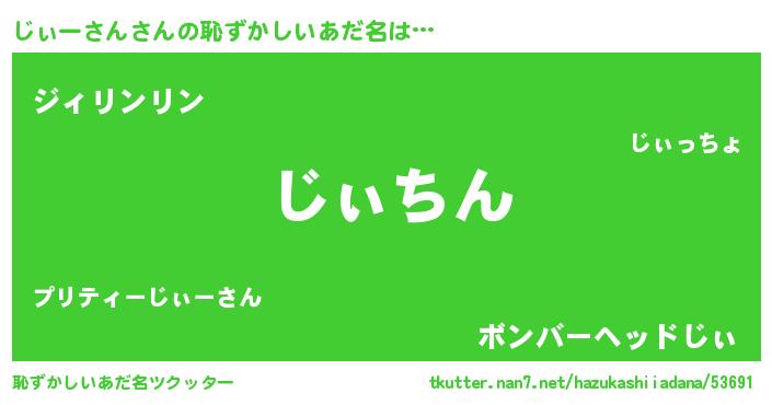 | ヘコむあだ名 | 『じぃーさん(遠い目)』『じぃぷりん』 |