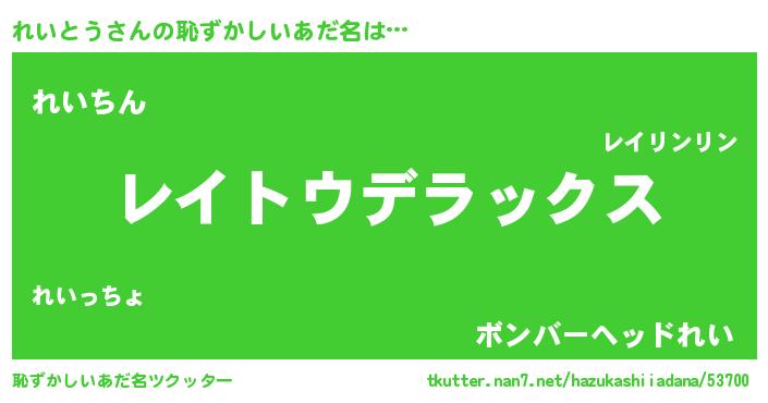 | 意味不明あだ名 | 『自称れいとう』『永久保存れいとう』 |