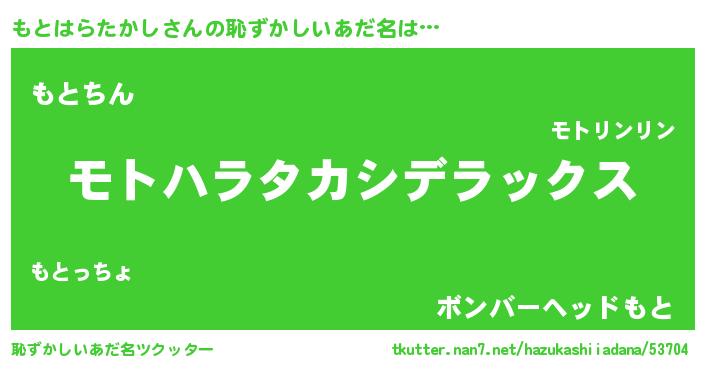 | 意味不明あだ名 | 『自称もとはらたかし』 |