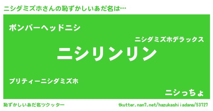| ヒーロー風カッコイイあだ名 | 『幻影騎士ニシ』『スーパーニシダミズホ』 |