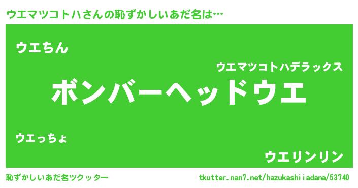 | ヘコむあだ名 | 『ウエマツコトハ(苦笑)』『ウエっぺ』 |