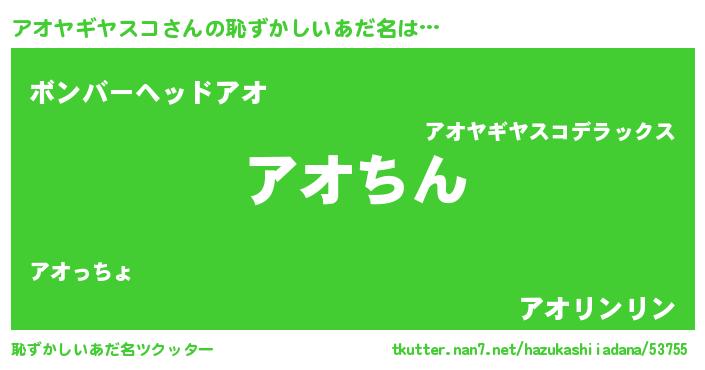 | ヘコむあだ名 | 『アオヤギヤスコ(震え声)』『アオぷりん』 |