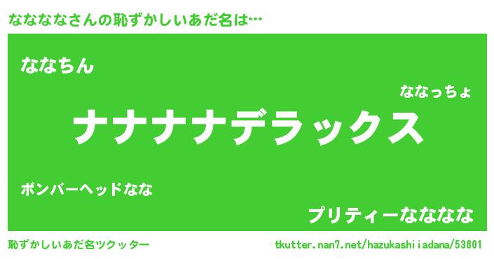 | ヒーロー風カッコイイあだ名 | 『最強戦士ナナナナ』『仮面ナナダー』 |