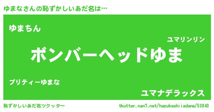 | ヘコむあだ名 | 『ゆまな(苦笑)』『ゆま太郎』『豆乳』 |