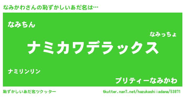 | ヒーロー風カッコイイあだ名 | 『仮面ナミダー』『ウルトラ戦士ナミカワ』 |