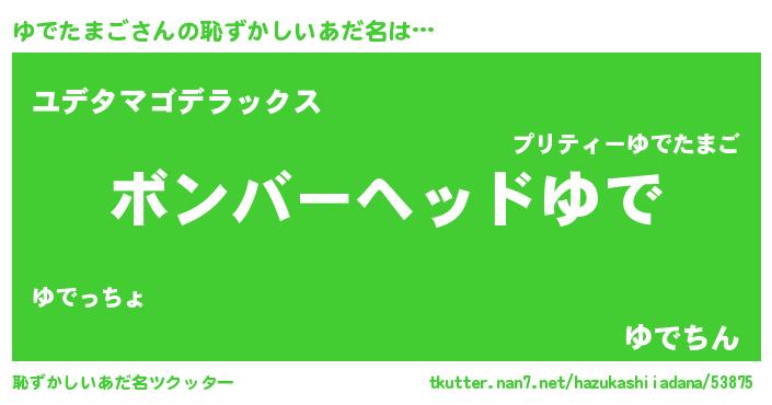 | 男性向けラノベタイトル風あだ名 | 『ユデタマゴスレイヤー』 |