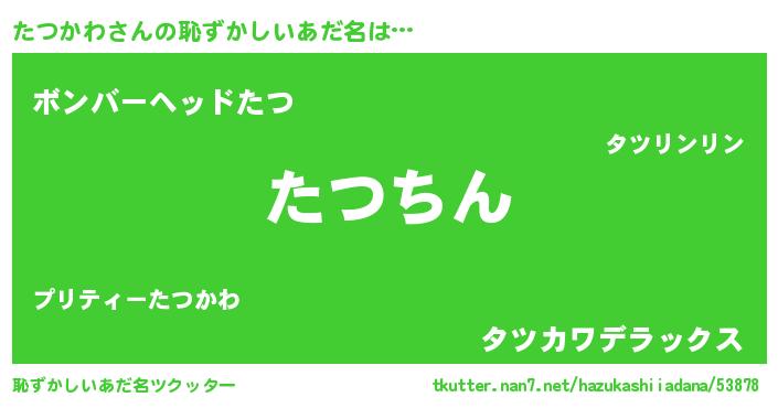 | 意味不明あだ名 | 『永久保存たつかわ』『自称たつかわ』 |