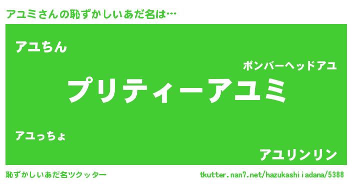| ヘコむあだ名 | 『アユもー』『アユミ(笑)』『アユを』 |