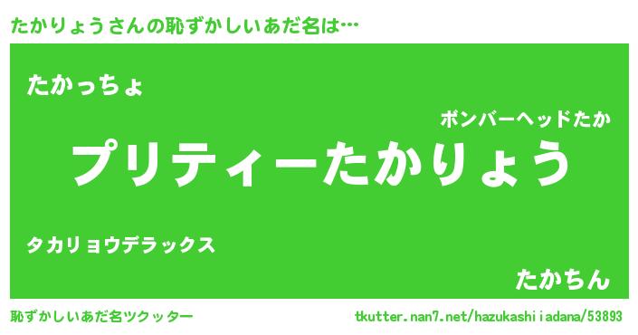 | 男性向けラノベタイトル風あだ名 | 『タカリョウスレイヤー』 |