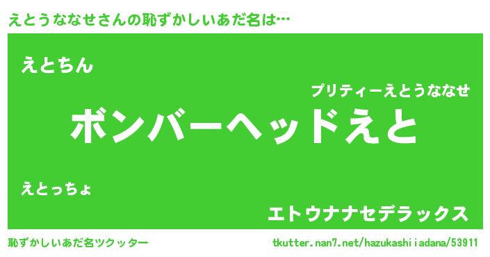 | 可愛いあだ名 | 『えとちゅっちゅ』『えとうななせママ』 |