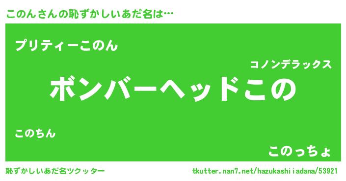 | 意味不明あだ名 | 『眠気覚ましガムこのん味』『自称このん』 |