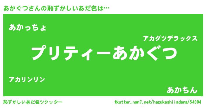 | 意味不明あだ名 | 『ペロリンあかぐつ』『永久保存あかぐつ』 |