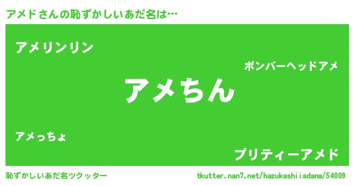 | ヘコむあだ名 | 『アメド(震え声)』『アメっぺ』 |