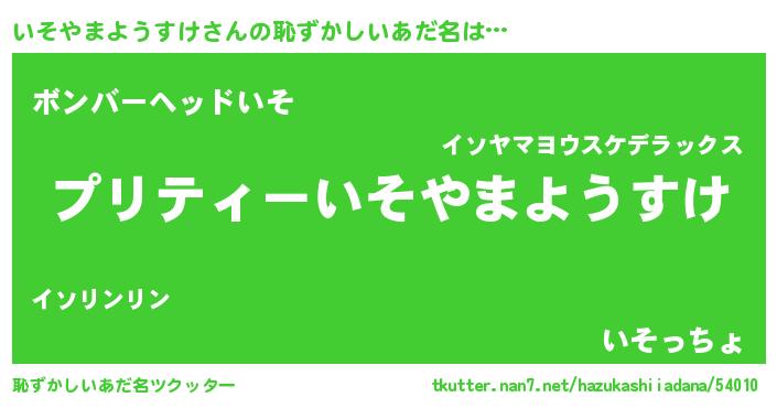 | 男性向けラノベタイトル風あだ名 | 『転生したらいそやまようすけだった件』 |